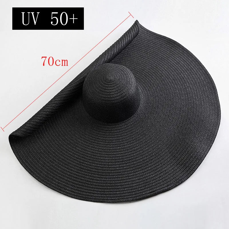 Übergroßer 70cm-Strohhut mit weiter Krempe – faltbar, stilvoll und ideal für Strand, Hochzeit oder sonnige Tage mit extra UV-Schutz.