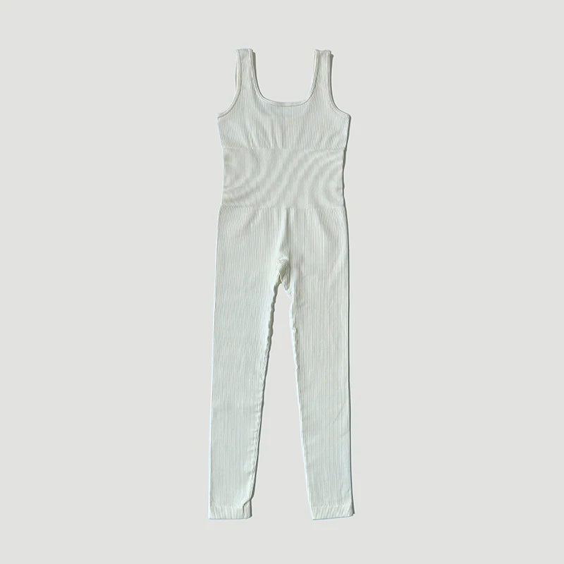 Ärmelloser, gerippter Fitness-Einteiler im Seamless-Design – bequem, figurbetont und ideal für Yoga, Workout oder Gym.